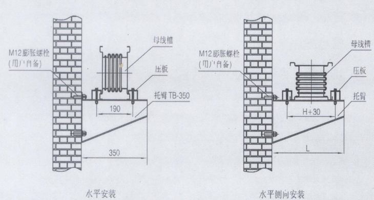 母線槽懸吊安裝母線檔吊式安裝兩安裝文架的距離不大于3m