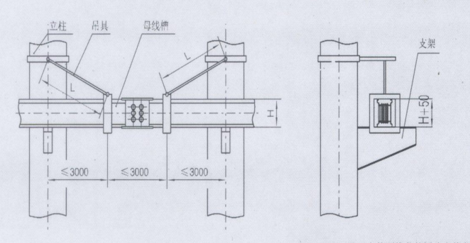 母線槽靠墻安裝時(shí),兩個(gè)安裝支架之間的距離應(yīng)不大于3m