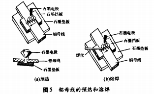 (8)焊工施焊時,焊工頭戴面罩,一手拿焊絲一手拿石墨碳棒,不斷地將現(xiàn)已生成的氧化鋁清出熔池。