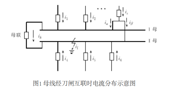 b.某一單元倒閘過程中,兩把刀閘都已閉合,而保護裝置沒有切換入互聯(lián)狀態(tài)。由于此時兩條母線槽已經(jīng)將兩把刀閘連在一起,部分電流流過刀閘而不經(jīng)過母聯(lián)TA,如果仍然判分差電流選擇切除母線槽,將降低保護靈敏度或延長故障切除時間。