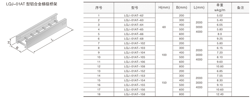 鋁合金電纜橋架在某種結(jié)構(gòu)形式中無其它結(jié)構(gòu)形式中的某-種產(chǎn)品類別,選型可作代用表示。例如:在LQU-CC型槽式鋁合金電纜橋架結(jié)構(gòu)形式中,無鋁合金配線橋架中的LPC-03D, 即表示為LFC-CC-03D。